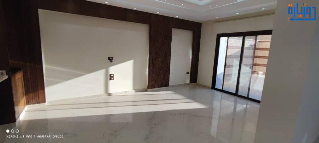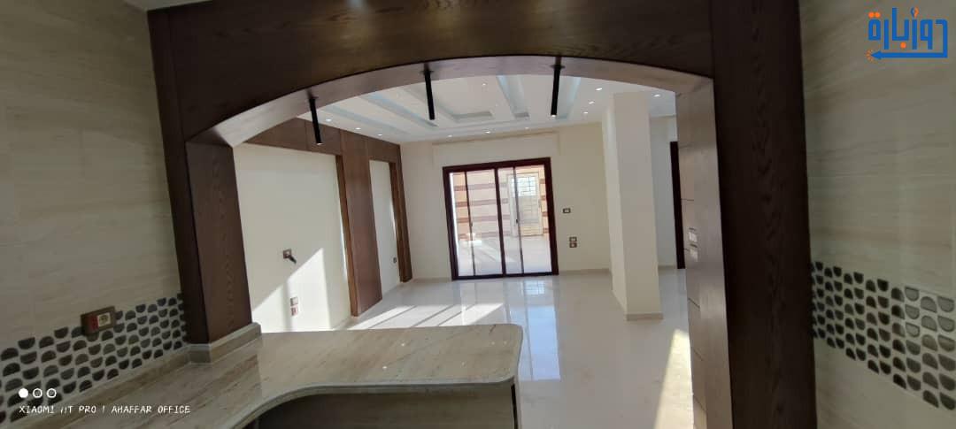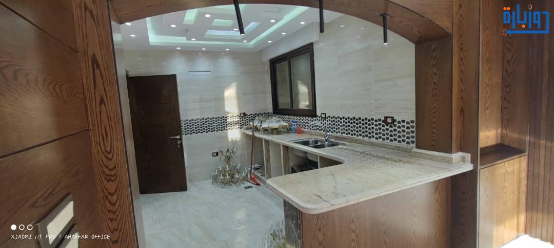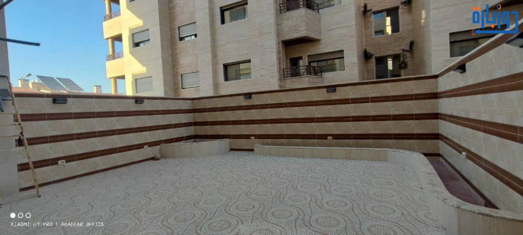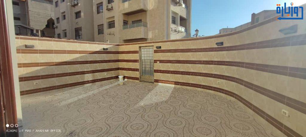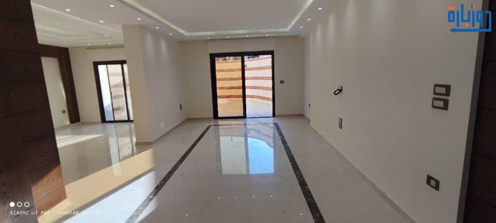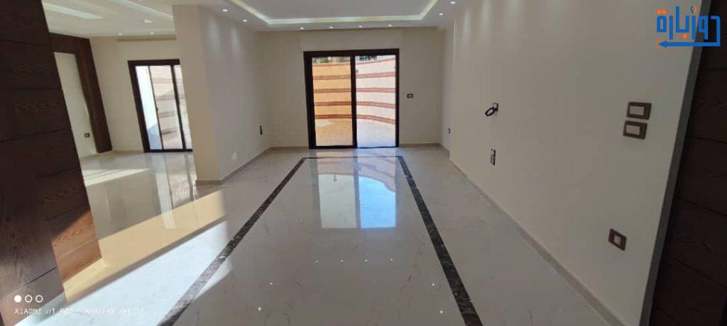 شقة أرضية مرتفعة عن الشارع بحديقتين 50 م2 + 50 م2 أمامية وخلفية واكساء رائع