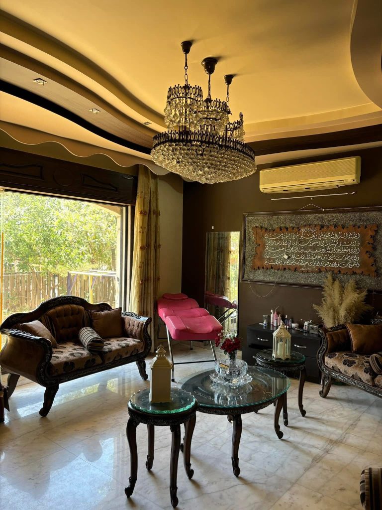 الطابق السفلي مساحة 120 متر غرفة نوم صالون واسع مطبخ حمام عدد2 غرفة شويدر غرفة فلترة