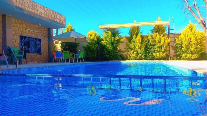 مزرعة رائعة بايجار متناسب مع الجميع وبموقع ساحر مع الطبيعة ومسابح مشدرة شادر متحركة 13*5 العمق متر لمترين وربع بالتدريج